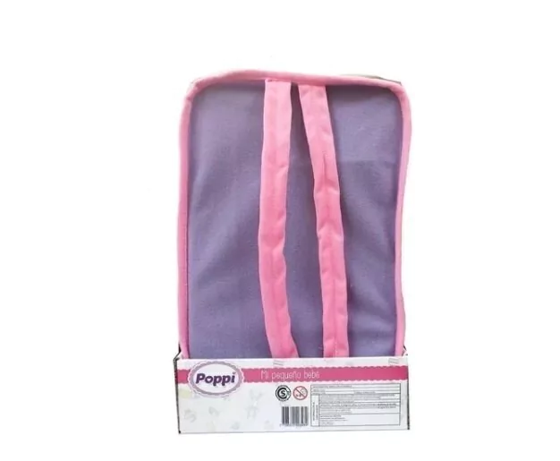 Poppi Mi Pequeño Bebe POPPI MI PEQUEÑO BEBE 3 EN 1 Incluye: 1 Mochila con dos correas 1 Porta bebe 1 Bebote de 20cm MEDIDAS DE LA CAJA: 17cm x 28cm x 8cm